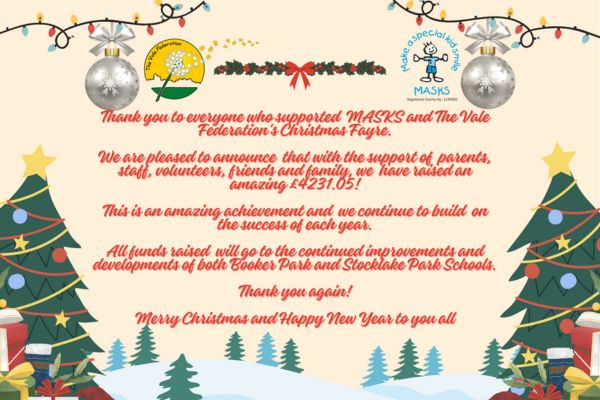 With around 350 students across the Federation, the MASKS team are constantly striving to fundraise in as many ways as possible. This ranges from PTA events, quiz nights, individuals taking on challenges, sponsored events, local community/business involvement and support from other organisations which all contribute to enhancing the lives of the children at the schools.